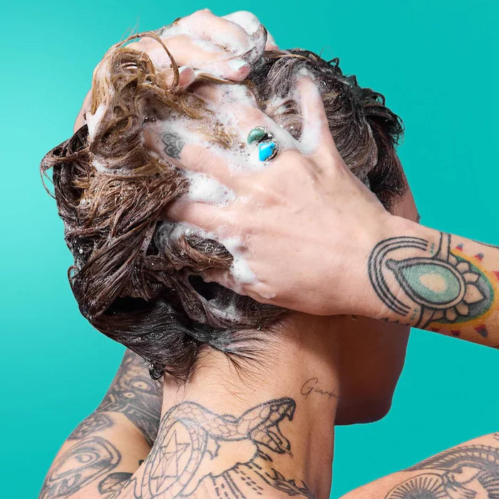 - Targets buildup from product, excess sebum, and metals in water